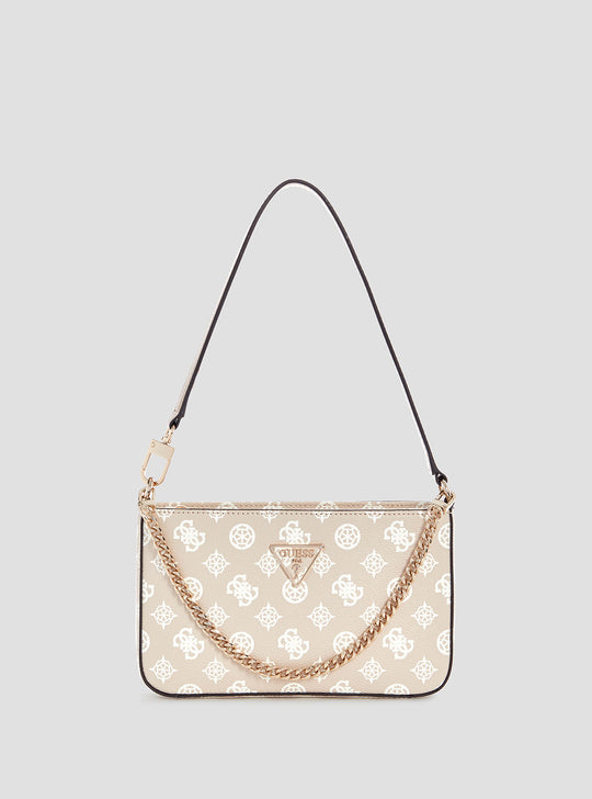 Get ready to make a statement with the Beige Logo Noelle Mini Shoulder Bag! The chic all-over logo print adds a touch of boldness while the chain strap adds functionality. With a top zip closure and shiny gold hardware, this bag is both stylish and practical. Plus, the printed peony logo on the base adds a unique touch. It's a must-have for any fashion-forward individual.