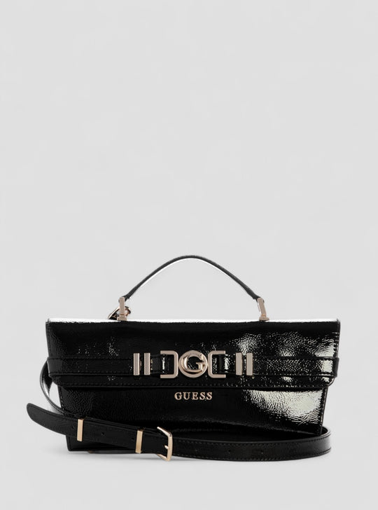 GUESS Womens Black Cirene Top Handle Flap Bag TG966820 Front View GUESS Womens Black Cirene Top Handle Flap Bag TG966820 Front Side View GUESS Womens Black Cirene Top Handle Flap Bag TG966820 Inside View GUESS Womens Black Cirene Top Handle Flap Bag TG966820 Back View
