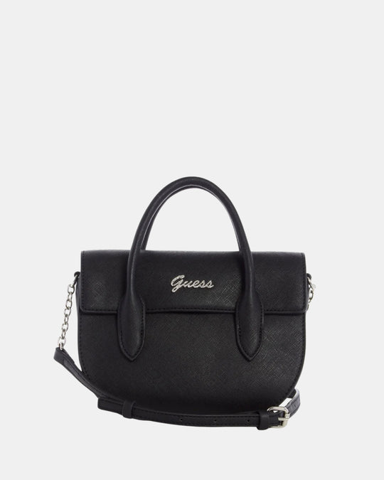Elevate your everyday look with the Black Claudel Crossbody Bag. This sleek black mini bag, crafted in durable PVC, features a structured flap design with a secure closure and polished front logo detail. Designed for versatility, it includes a top handle and an adjustable crossbody strap, offering both style and function for day-to-night wear.