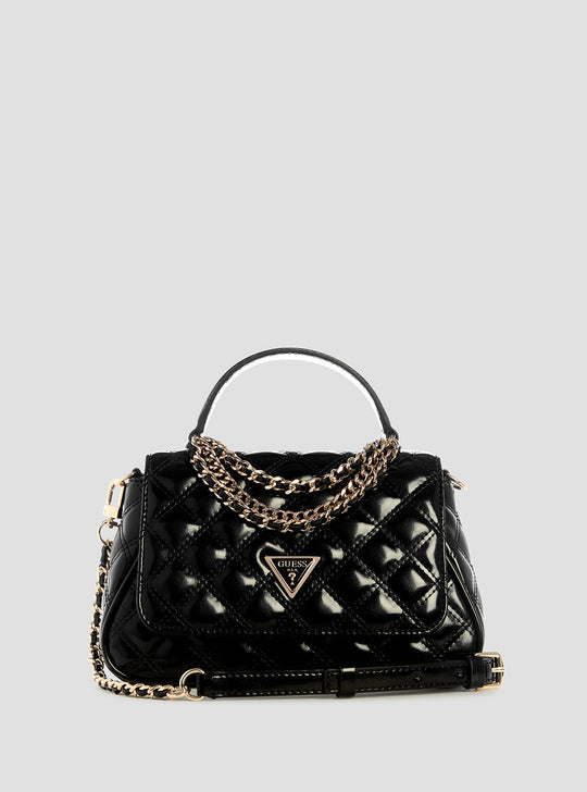 GUESS Womens Black Giully Top Handle Flap Bag TT967319 Front View GUESS Womens Black Giully Top Handle Flap Bag TT967319 Front Side View GUESS Womens Black Giully Top Handle Flap Bag TT967319 Inside View GUESS Womens Black Giully Top Handle Flap Bag TT967319 Back View
