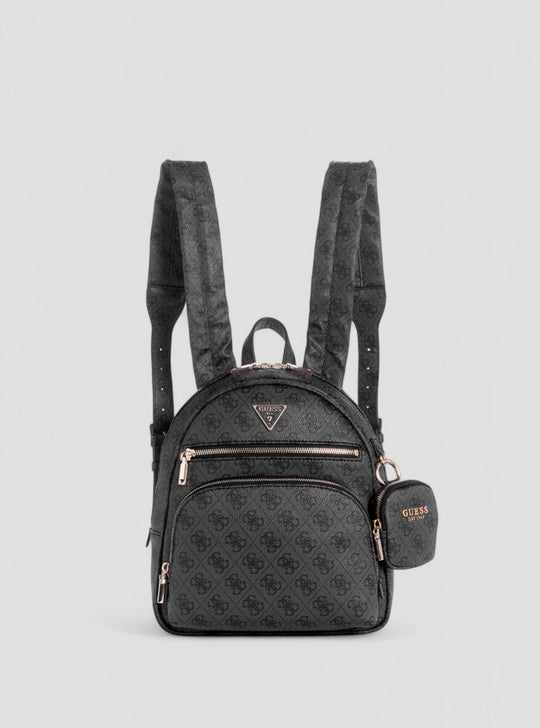 Carry all your essentials in style with our Black Logo Power Play Backpack. With multiple compartments and adjustable straps, it's the perfect accessory for any adventure. Plus, it comes with a detachable coin purse for added convenience. Made with a quilted 4G logo basiqué PU base and trimmed with a shiny gold hardware, this backpack is both functional and fashionable.