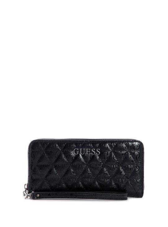 GUESS Women's Black Quilted Wessex Large Wallet GN837946 Front View GUESS Women's Black Quilted Wessex Large Wallet GN837946 Open View GUESS Women's Black Quilted Wessex Large Wallet GN837946 Back View