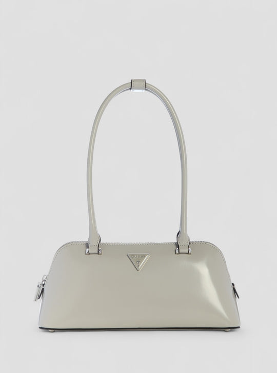 Carry your essentials in style with the sleek Grey Arnela Shoulder Satchel Bag. Its shoulder handle and top zip closure offer convenience, while the logo detail adds a touch of sophistication. Made with smooth PU and adorned with shiny silver hardware, this bag is both functional and fashionable.