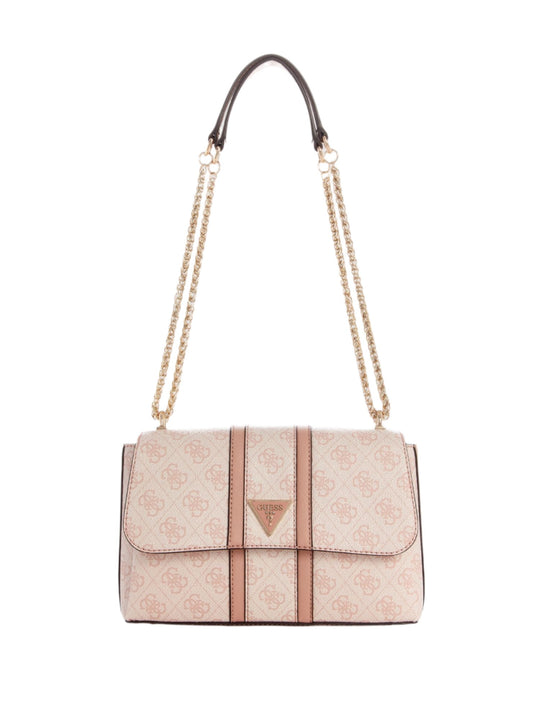 Complete your look with the Pink Noreen Convertible Crossbody Flap Bag. This versatile dusty rose bag showcases a half-flap design with a magnetic closure, combining convenience with style. Crafted in 4G logo basique PU and complemented by pebble PU trim, it features shiny gold hardware for a refined finish. With both short and long drop options, it can be worn as a shoulder or crossbody bag, making it perfect for day-to-night transitions.