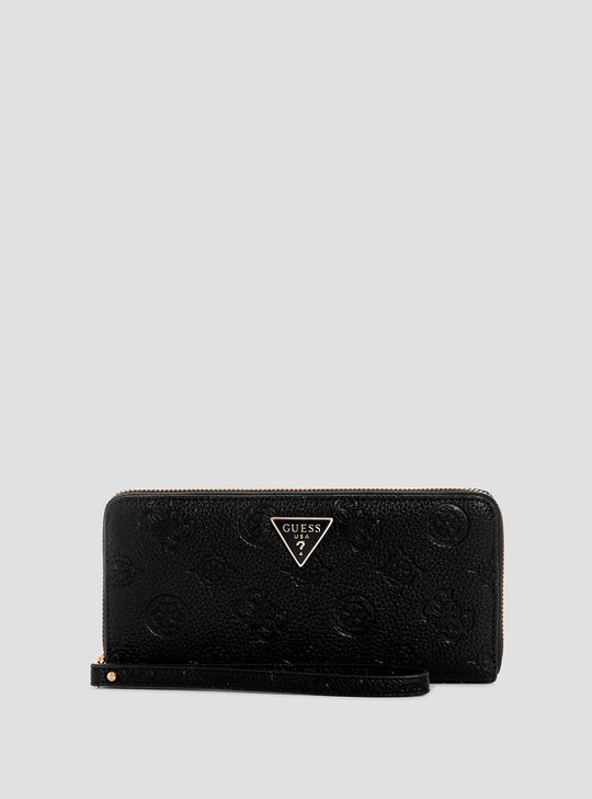 Stay organised and stylish with the Black Cresidia Large Wallet. The debossed pebble PU and shiny gold hardware add a touch of elegance, while the exterior zip pocket and multiple interior pockets provide functionality. With a detachable wrist strap, it's the perfect accessory for any occasion.