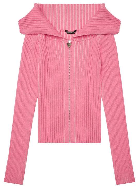 Make a bold style statement with this Pink Long Sleeve Sweater (7–16). Designed with a ribbed texture and a zip-up front, this fitted sweater features a foldover collar detail for a trendy, elevated look. Crafted from a soft and stretchy fabric blend, it’s perfect for layering or wearing on its own during cooler days.